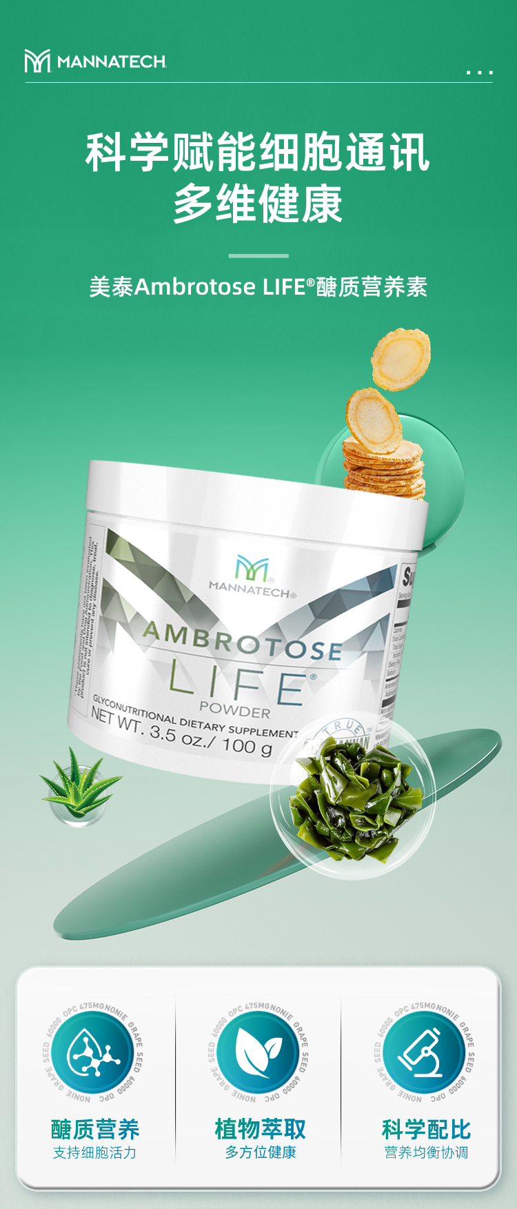 Ambrotose LIFE新生代醣质营养素实现了营养均衡,在这种营养补充剂中含有多种强效天然成分,全方位促进您的健康。